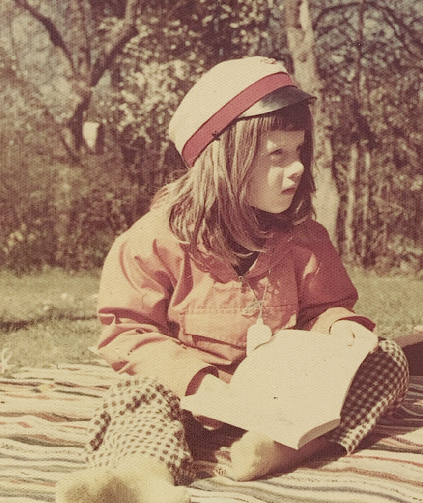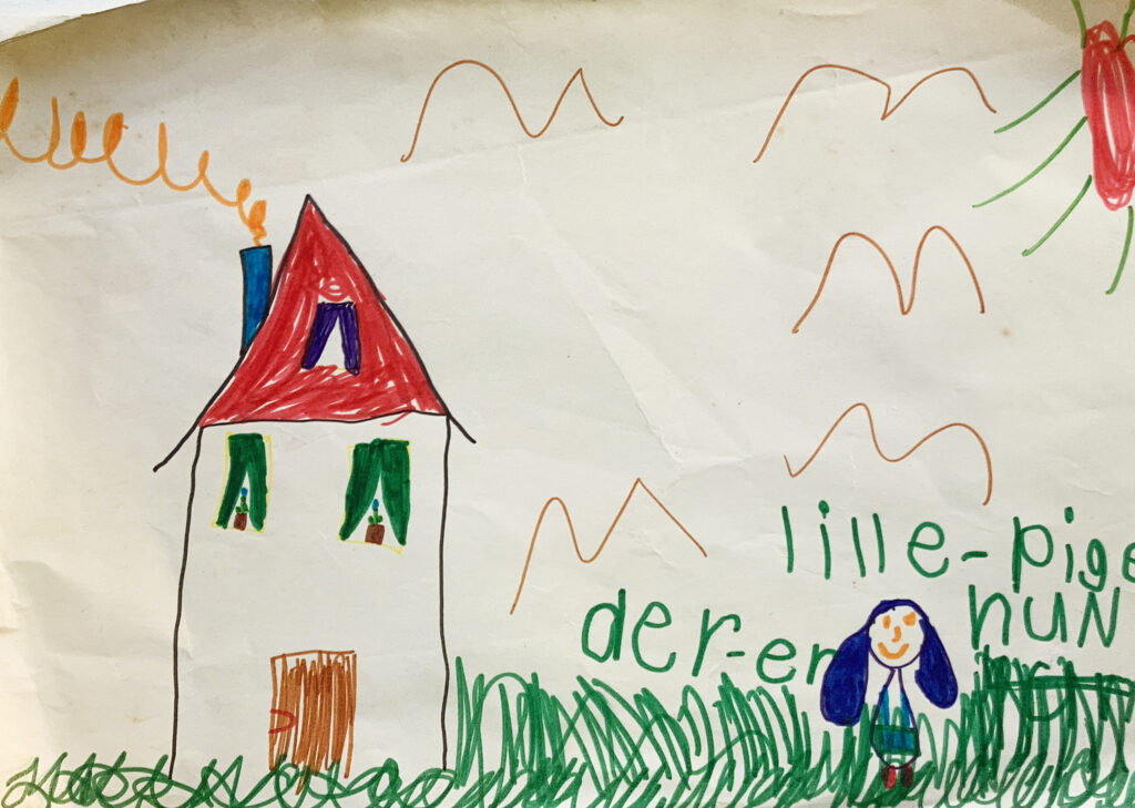 Nogle af mine tidligste minder stammer fra min mormors og morfars hus i Allerød. Her er rart. Jeg ligger i en seng med blødt velduftende sengetøj og ser op på de lysmønstre bilerne på gaden kaster op på gipspladerne i loftet. Min mormor åbner døren ind til loftstrappen og jeg mærker den fugtig-kølige luft og duften af de syltede rødbeder og asier, der står på hylden ved trappen. Jeg ser på billederne i bogen om Snehvid og Rosenrød, som møder en dværg, der har fået skægget i klemme i en stykke træ. Min mormor har fuldstændig hvidt hår, som er sat op. En aften ser jeg hende sidde og tage hårnålene ud af håret, så de hvide lokker falder ned over det gulligt-hvide voksede friserslag hun har over skulderen. Jeg synes, hun ligner en engel.