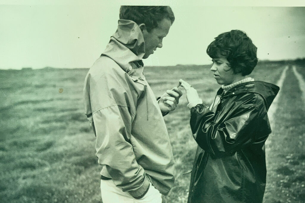 De forlover sig og kører på tandem over til min farfars sommerhus i Vestjylland. Hun skriver hjem til sine forældre i Allerød om sin kommende svigerfamilies fornemme løgstel. De bliver gift 26. september 1965, min far er 22, min mor er næsten 23 og bærer min farmors families brudediadem.